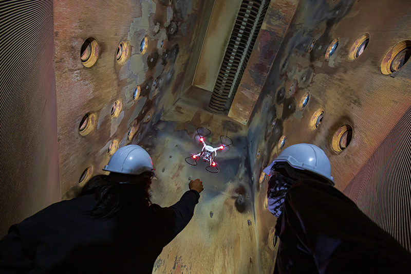 Mit dem Einsatz einer Käfig-Kameradrohne können dunkle, gefährliche und schwer zugängliche Bereiche inspiziert werden. Lagertanks, Silos, Kessel, Kühltürme und Brennkammern sind nur unter hohem Risiko, widrigen Bedingungen und großem Aufwand für menschliche Inspekteure zugänglich.